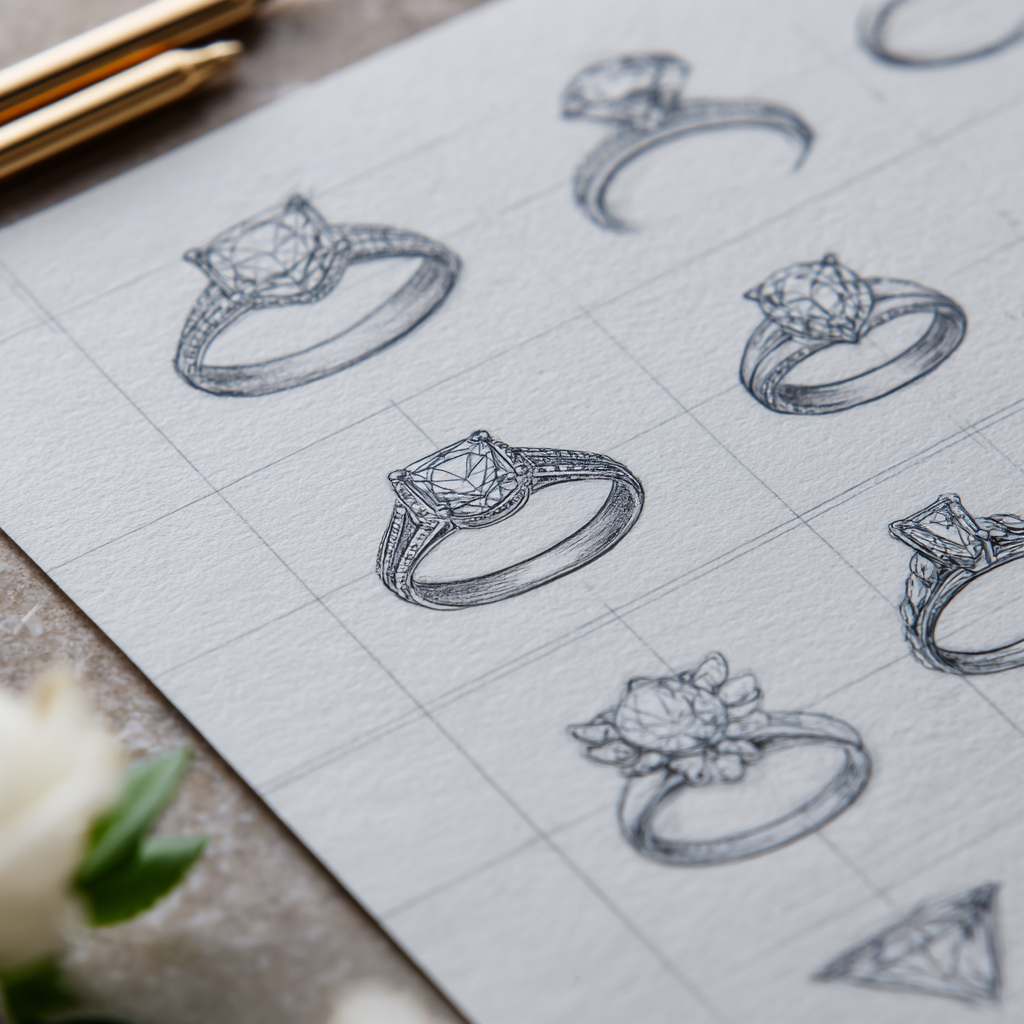 Whether you’re dreaming of natural diamonds, a specific setting, or a completely new design, we’re here to help. Tell us what you have in mind and we’ll walk you through every step, from sourcing to finishing.